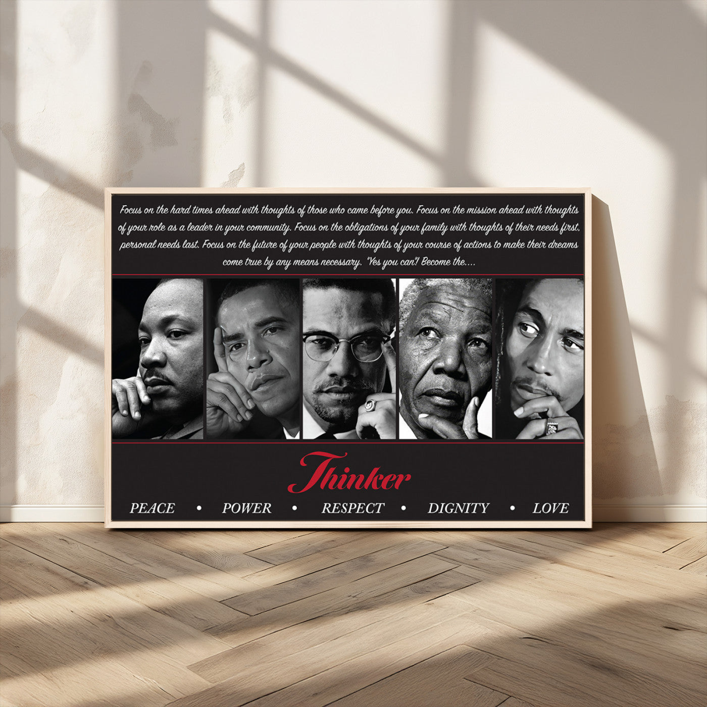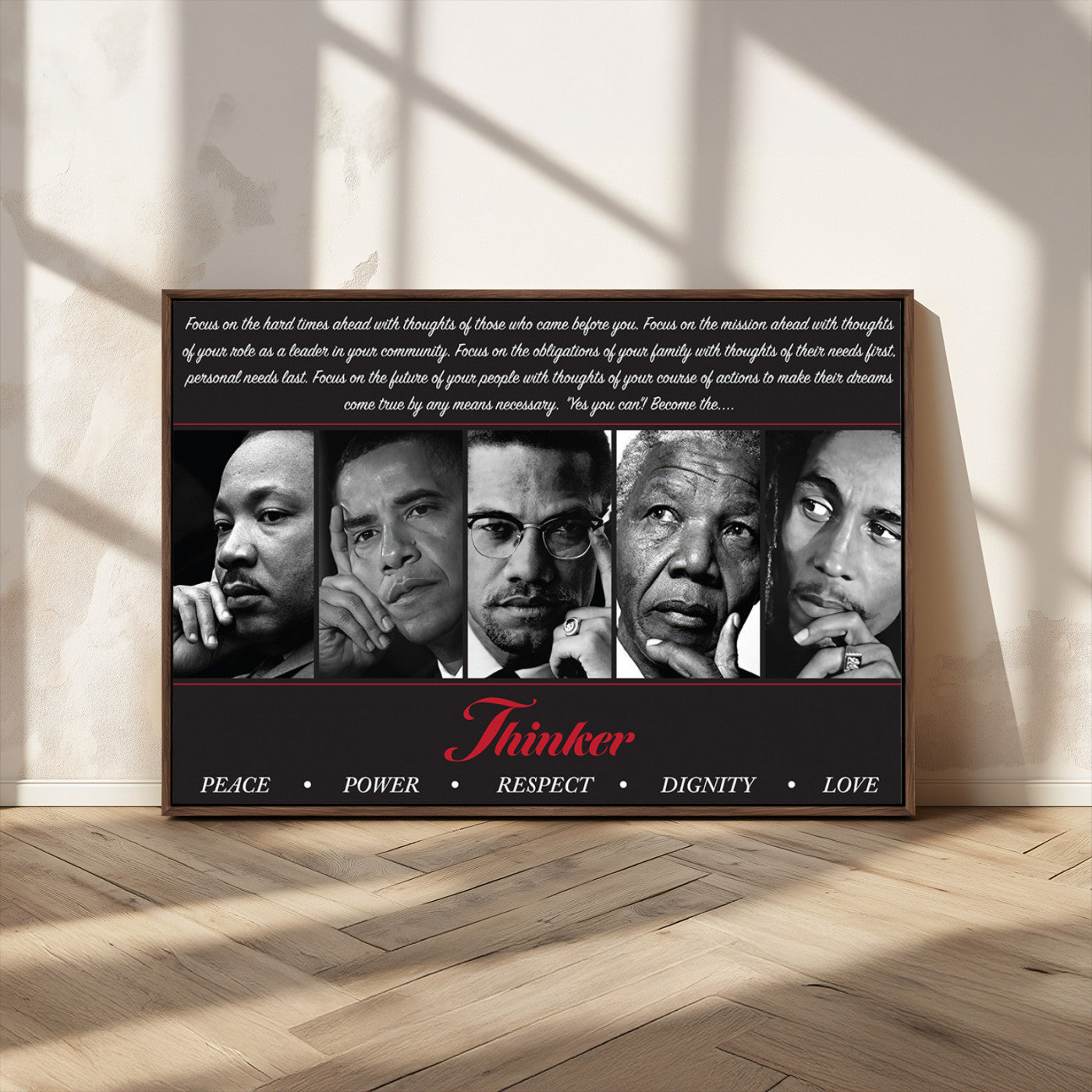 Black Icons Wall Art Canvas Print, Framed Thinker Art Picture Print, Motivational Quote Perfect Cultural Modern Decor Artwork