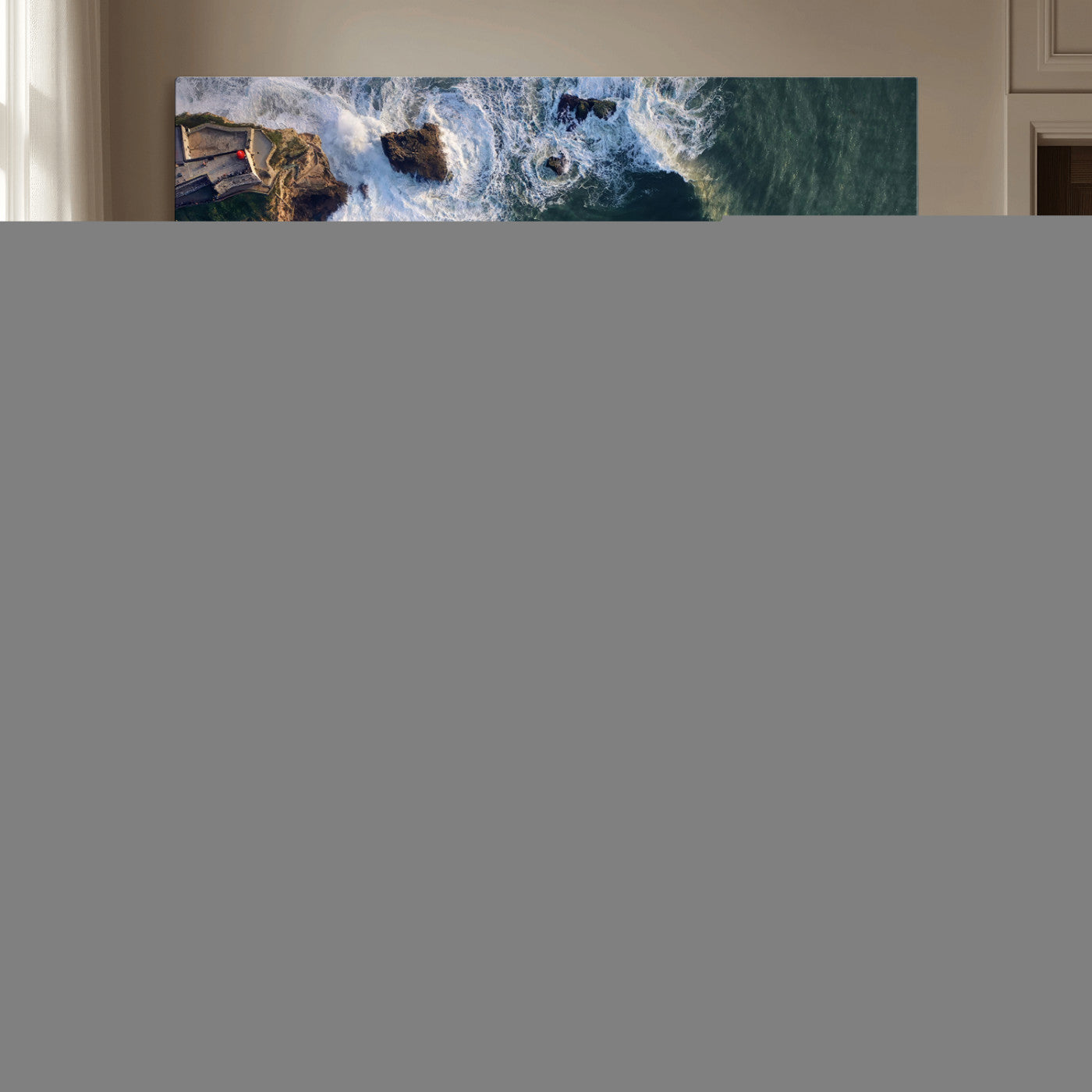 Nazaré Coast Wall Art Canvas Print, Framed Aerial Ocean Art Picture Print, Coastal Fortress Perfect Dramatic Coastal Decor Artwork