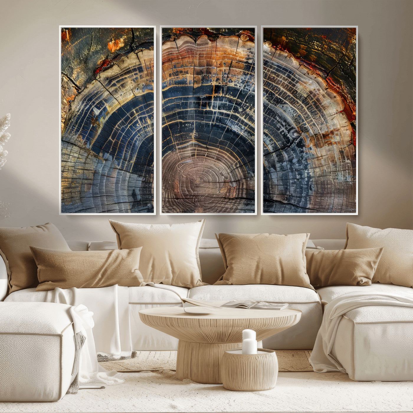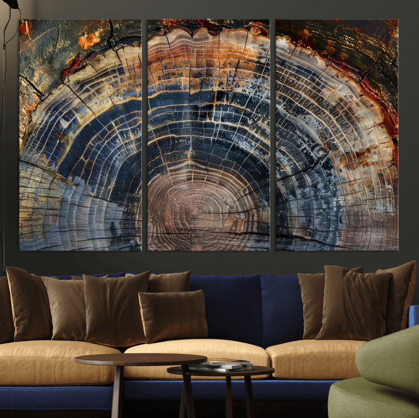 Tree Ring Wall Art – Abstract Wood Grain Canvas Print, Rustic Nature Texture Artwork Poster for Living Room, Bedroom, Office,