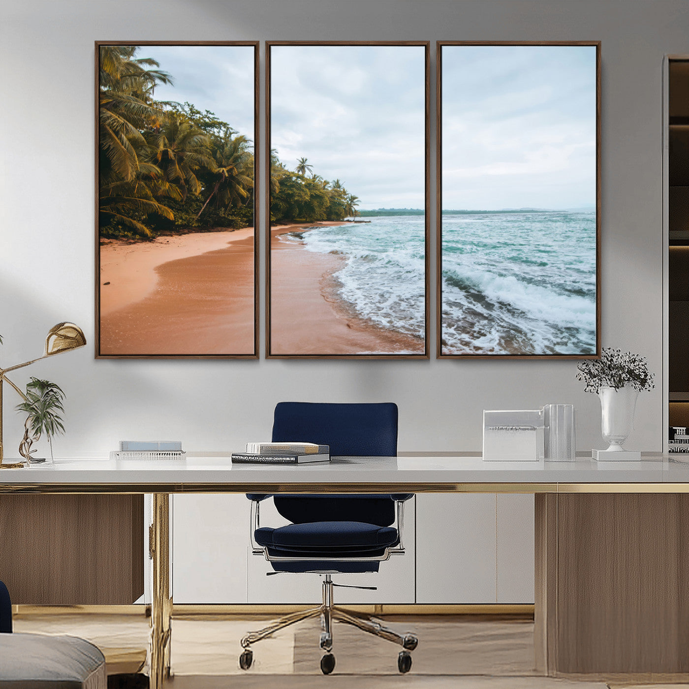 Tropical Shoreline Wall Art Canvas Print, Framed Palm Trees Art Picture Print, Tropical Ocean Perfect Tropical Coastal Decor Artwork is a high-quality decorative print that enhances any space. Printed with eco-friendly inks, ensuring vibrant and fade-resistant colors. The detailed artwork adds a sophisticated touch to interiors, making it perfect for various decor styles. Available in multiple sizes to fit different room settings.
