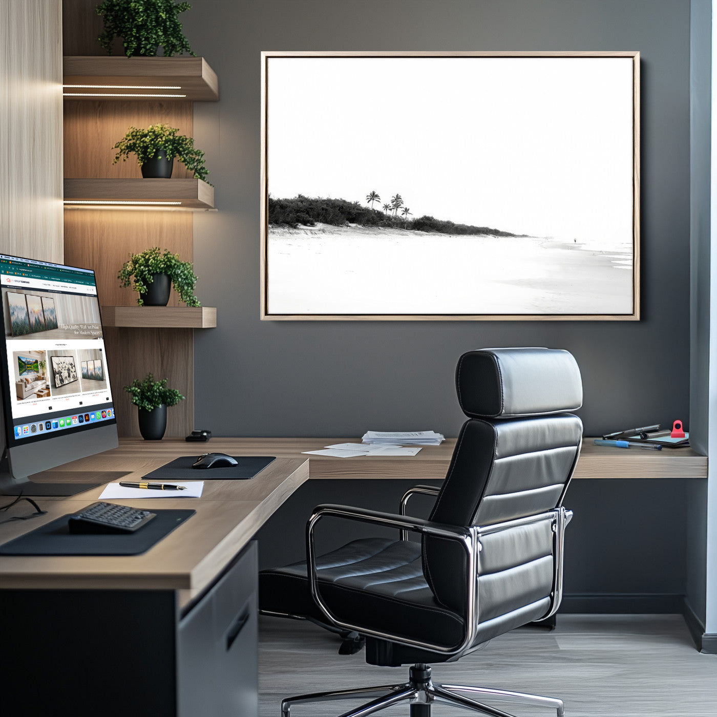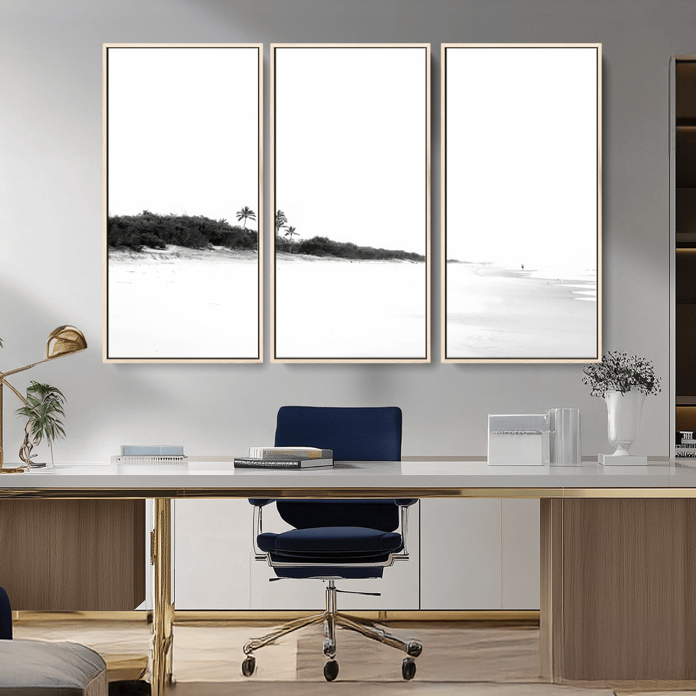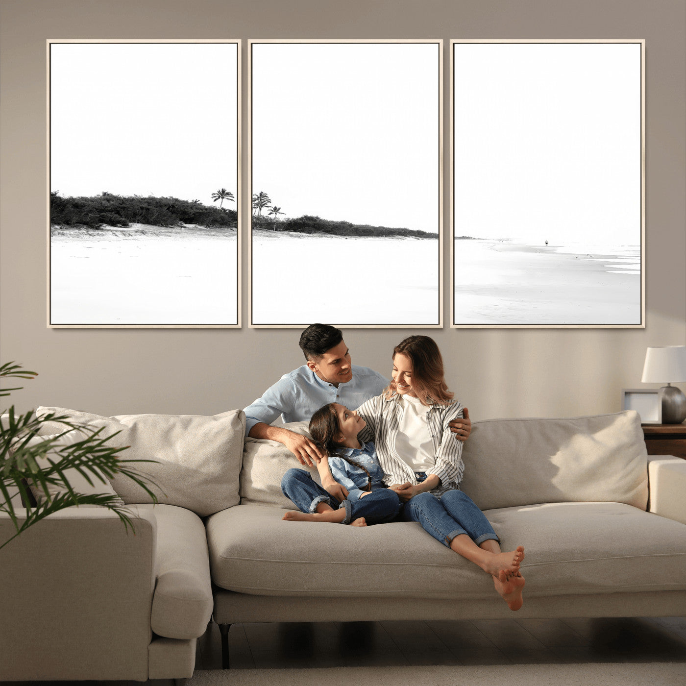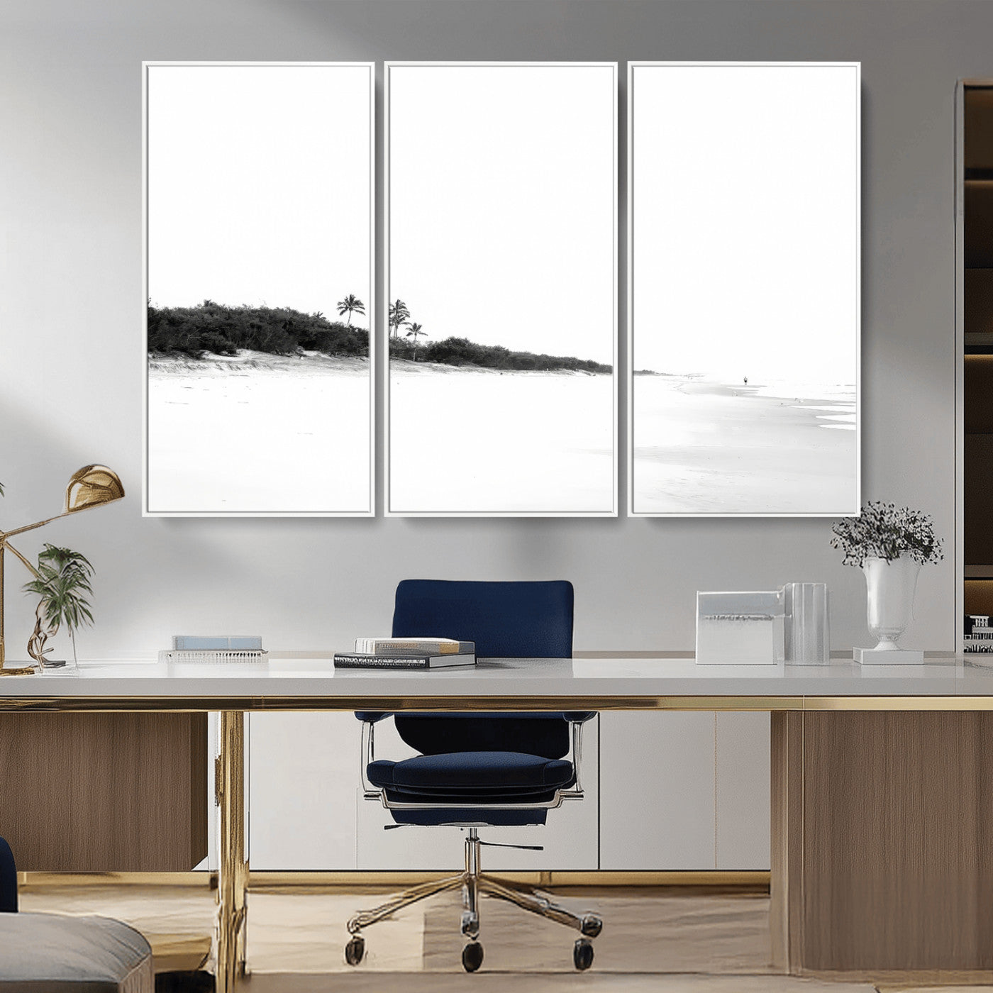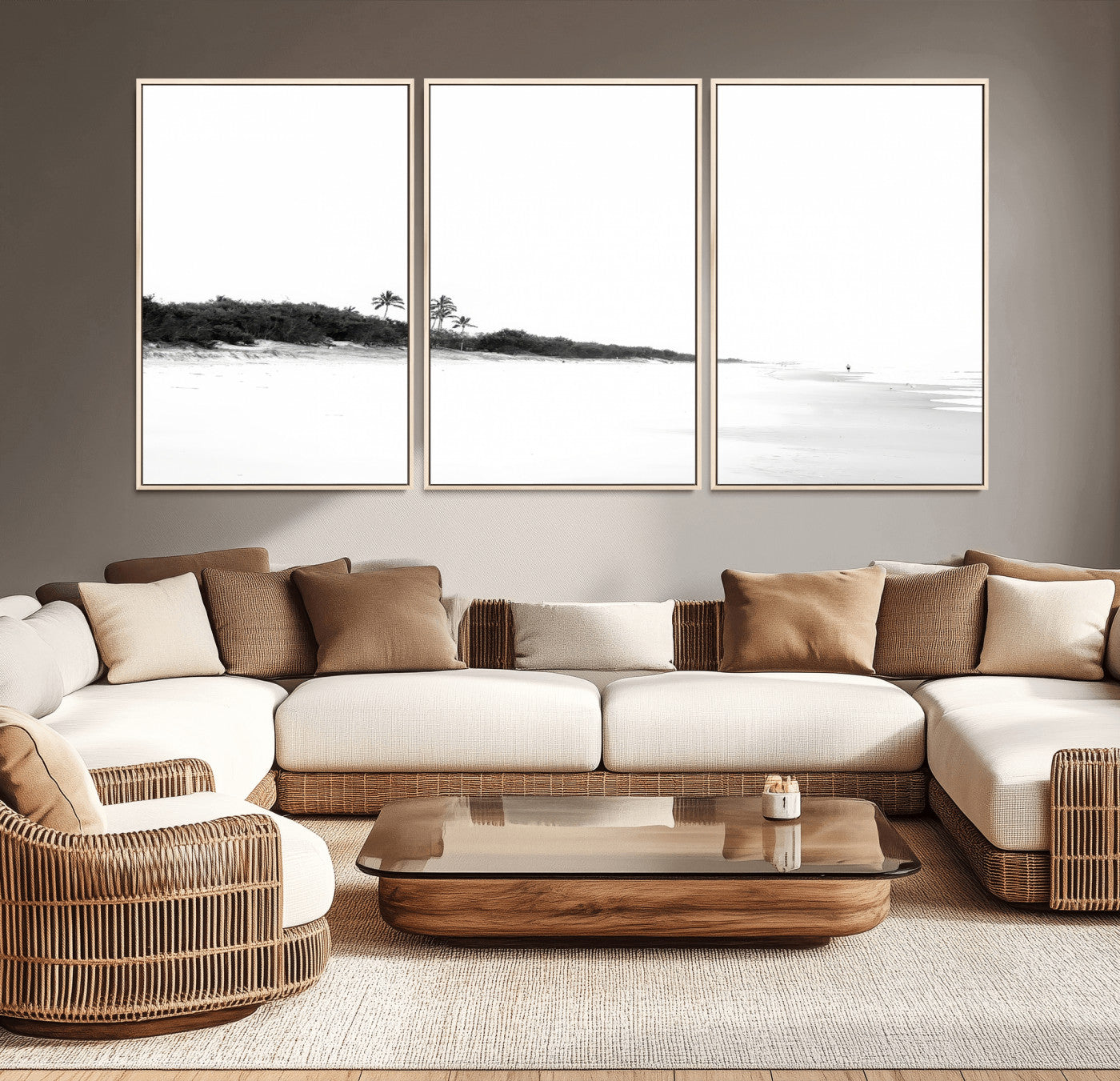 Black White Beach Wall Art Canvas Print, Framed Palm Trees Art Picture Print, Monochrome Tropical Perfect Minimalist Coastal Decor