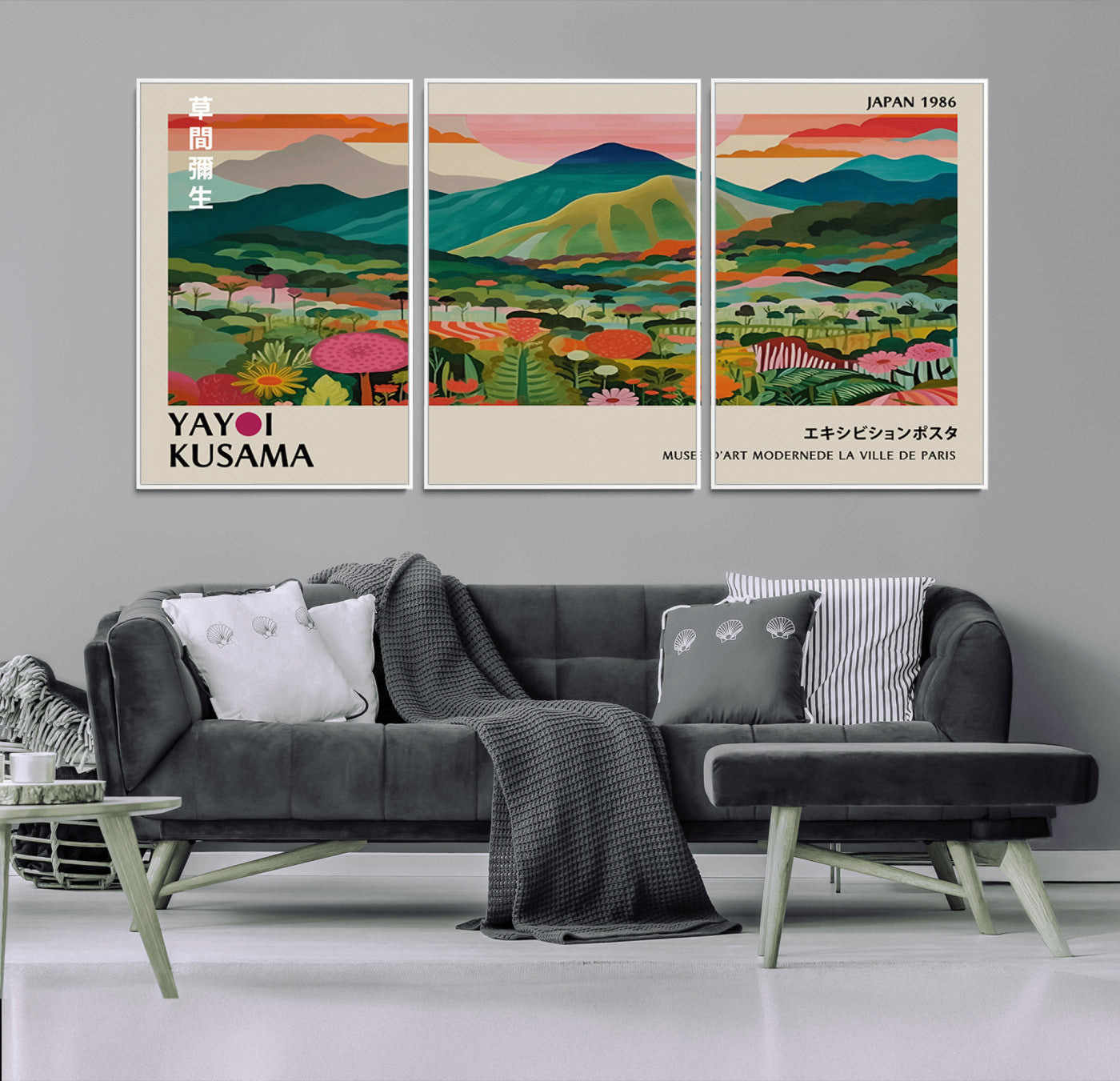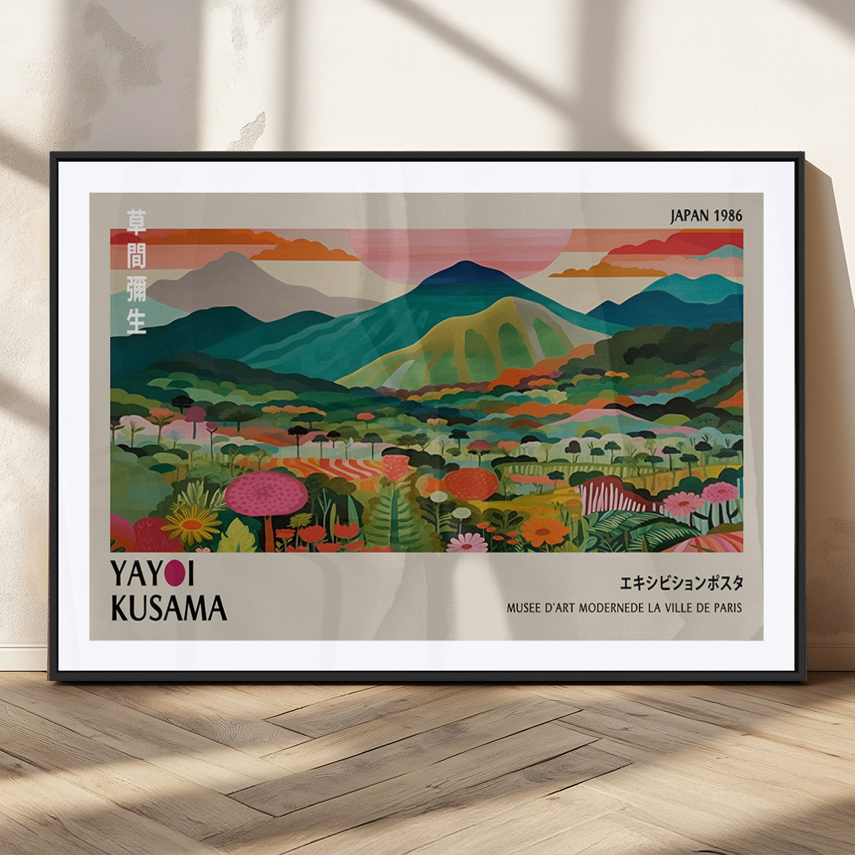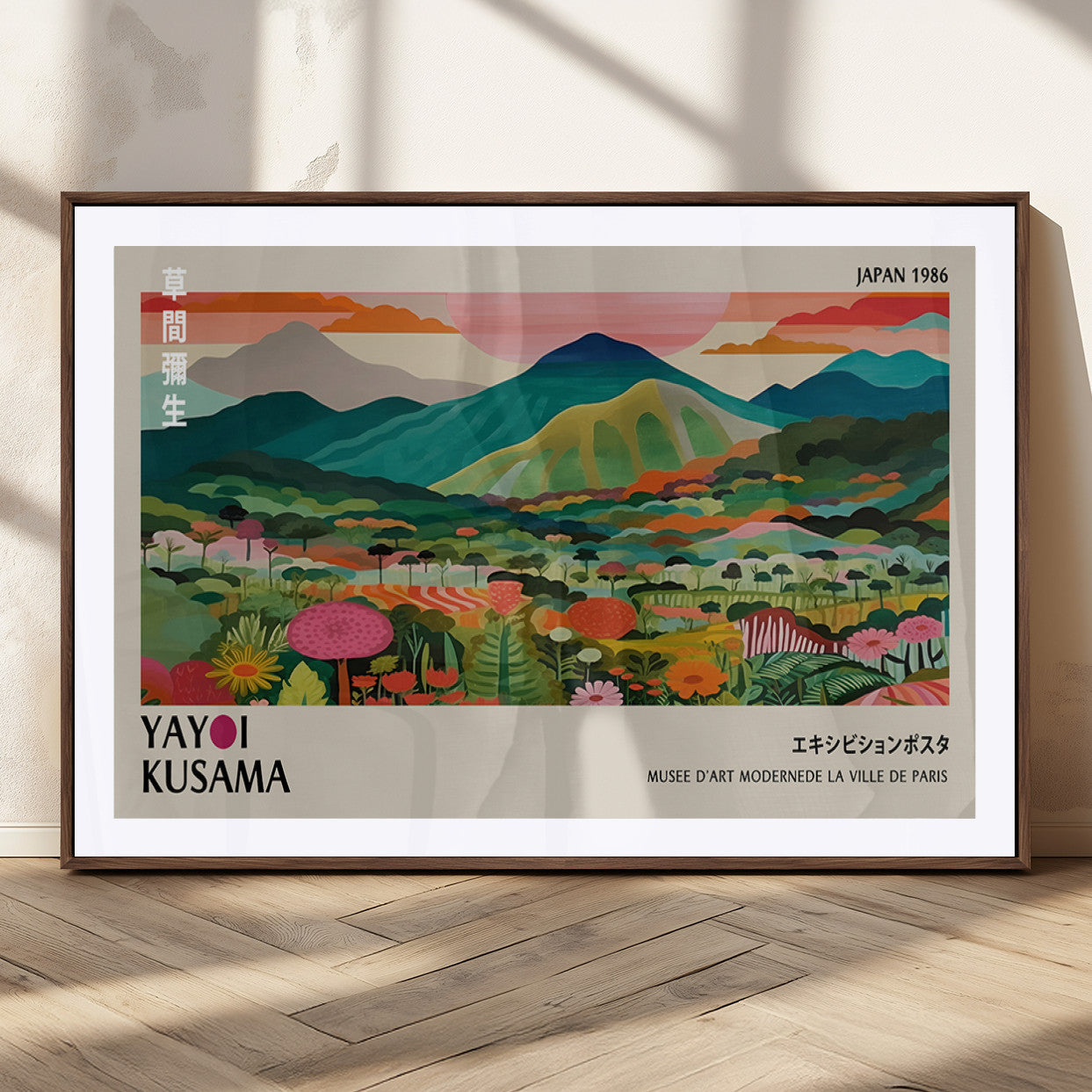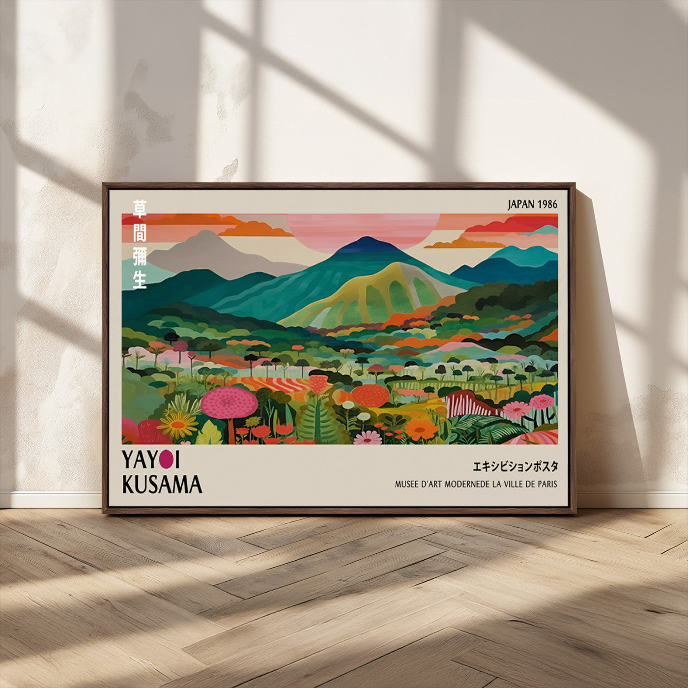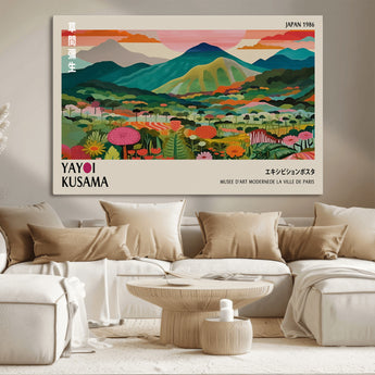 Yayoi Kusama Wall Art – Panoramic Japanese Landscape Canvas Print, Modern Abstract Nature Decor for Office, Bedroom or Living Room