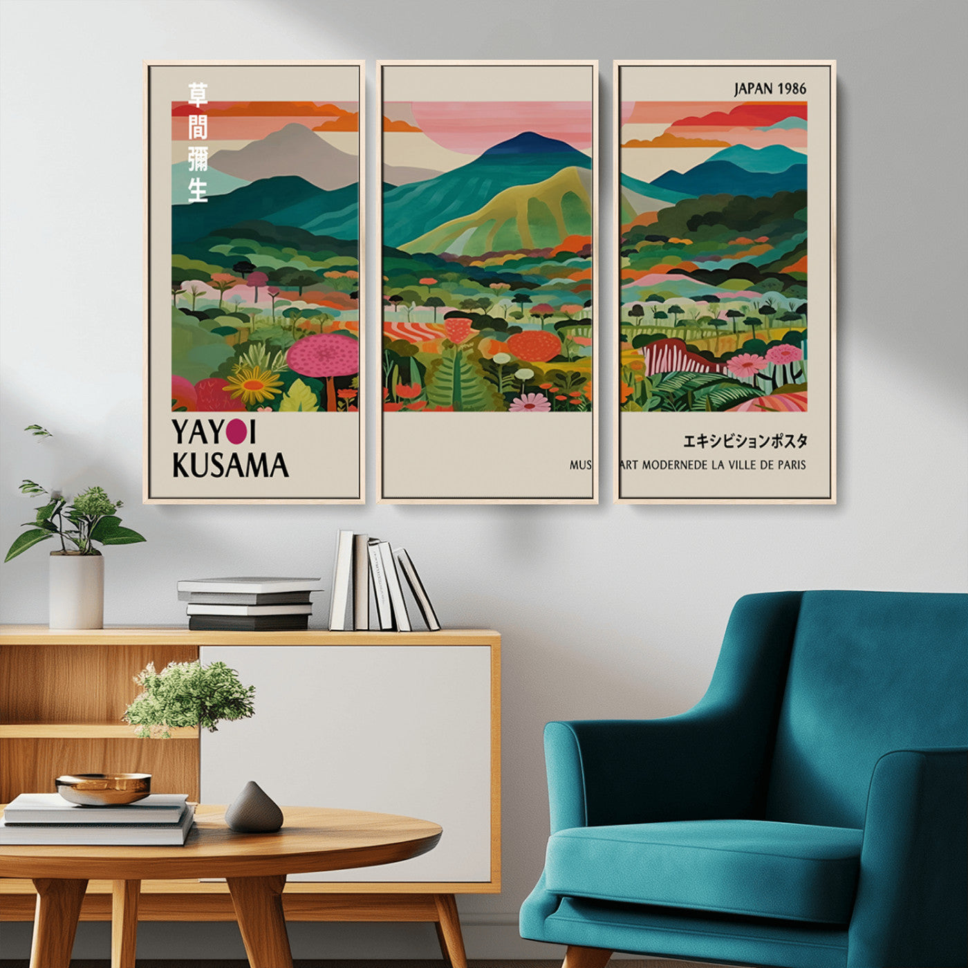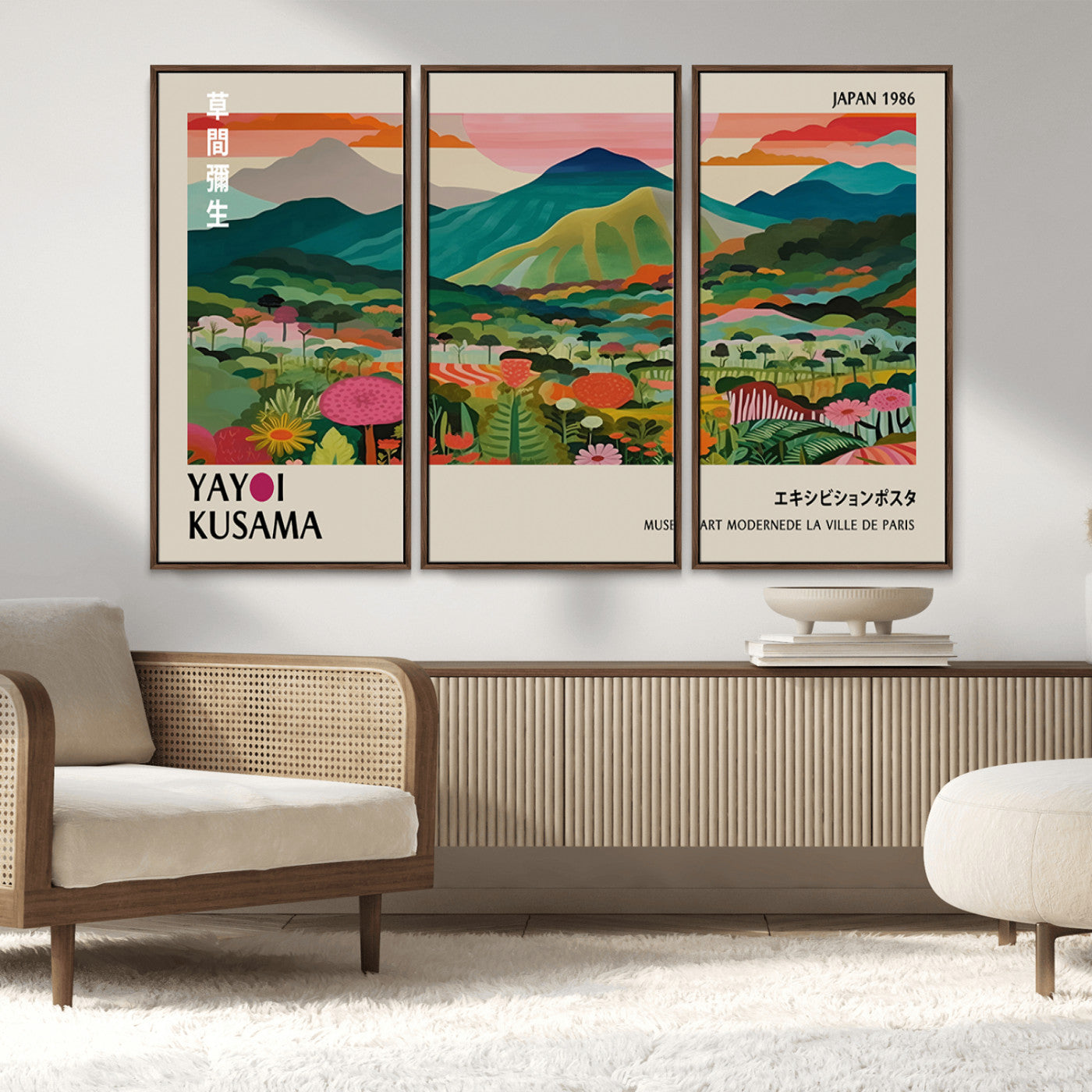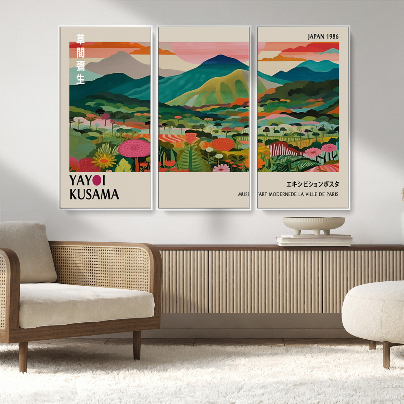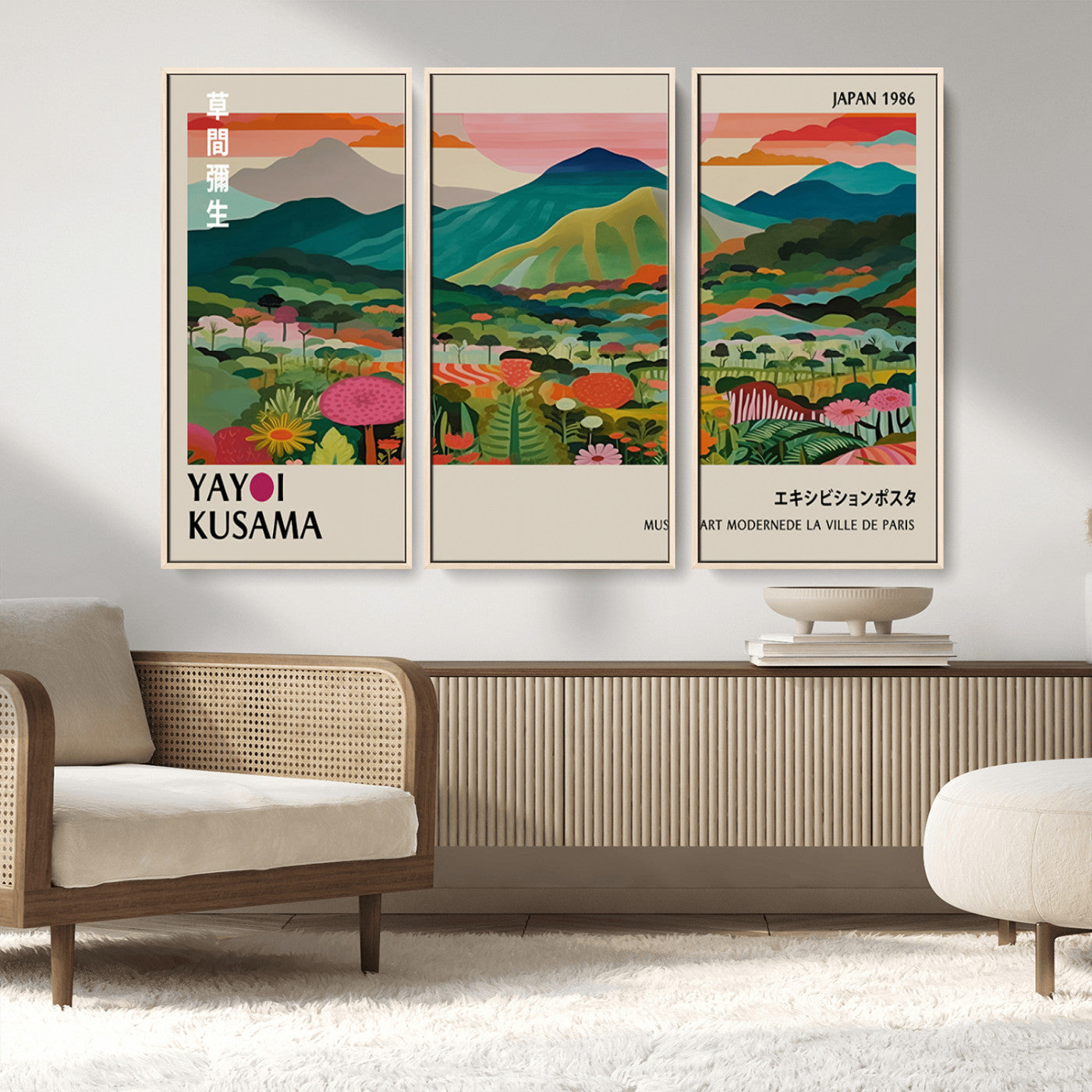 Yayoi Kusama Wall Art – Panoramic Japanese Landscape Canvas Print, Modern Abstract Nature Decor for Office, Bedroom or Living Room