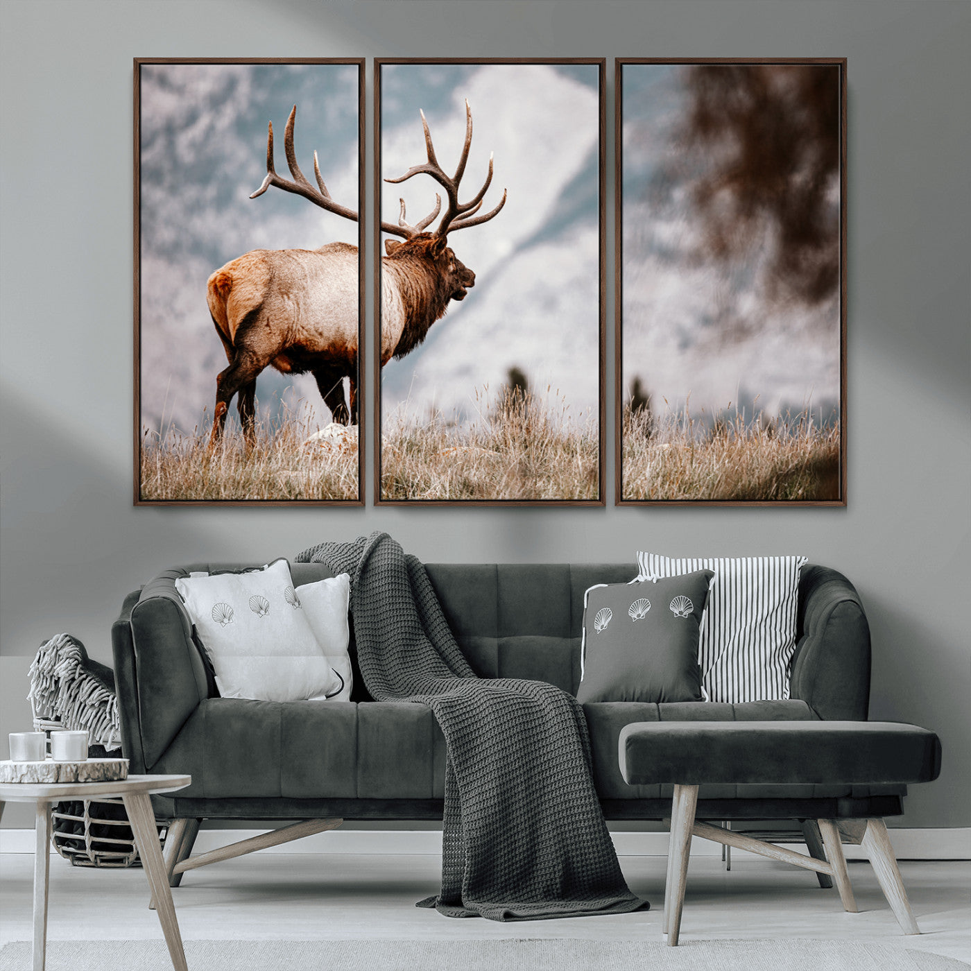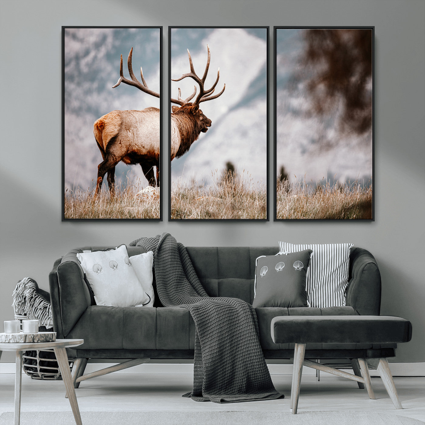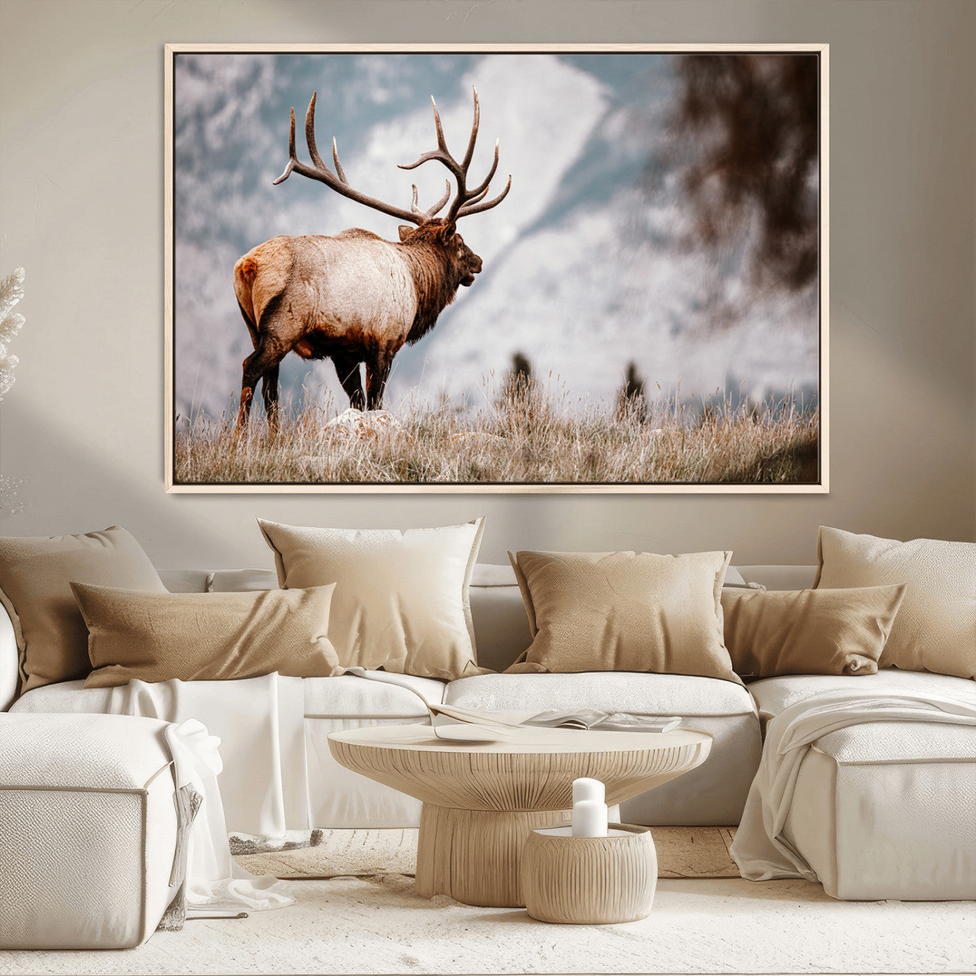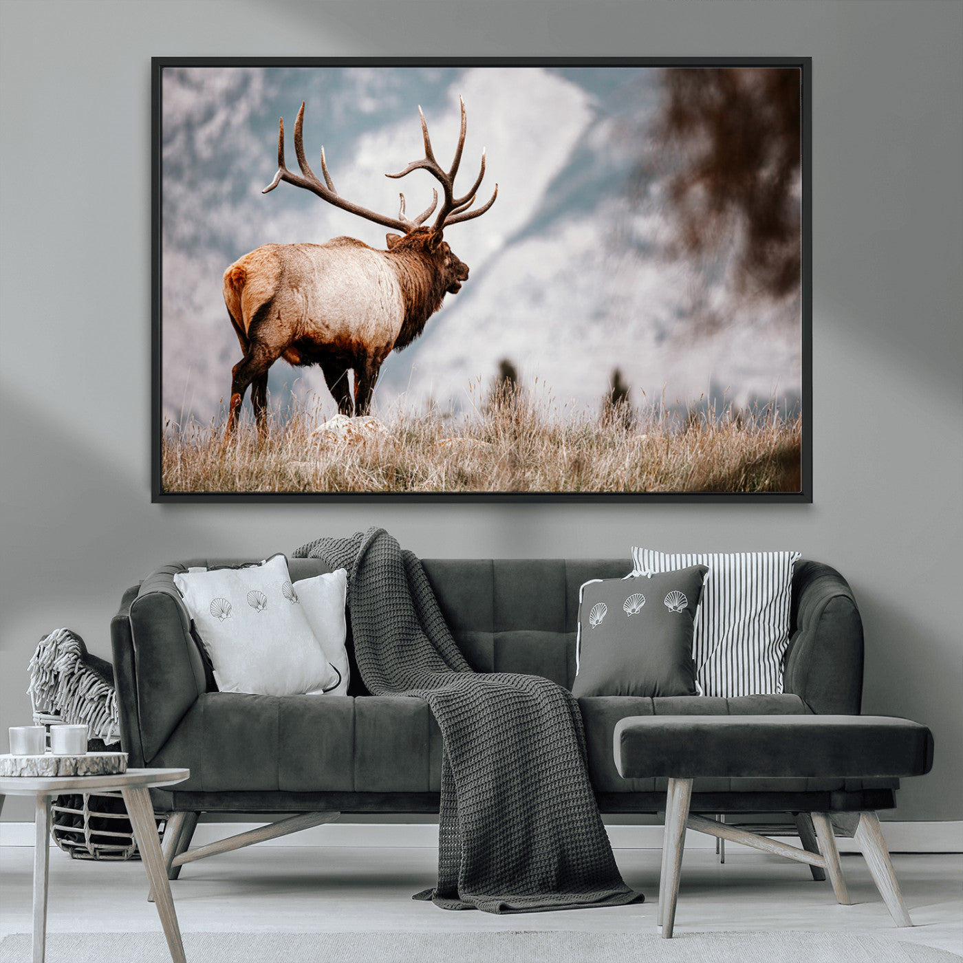 Elk Photography Wall Art Canvas Print, Framed Mountain Wildlife Art Picture Print, Rustic Nature Decor Perfect Rustic Lodge Decor