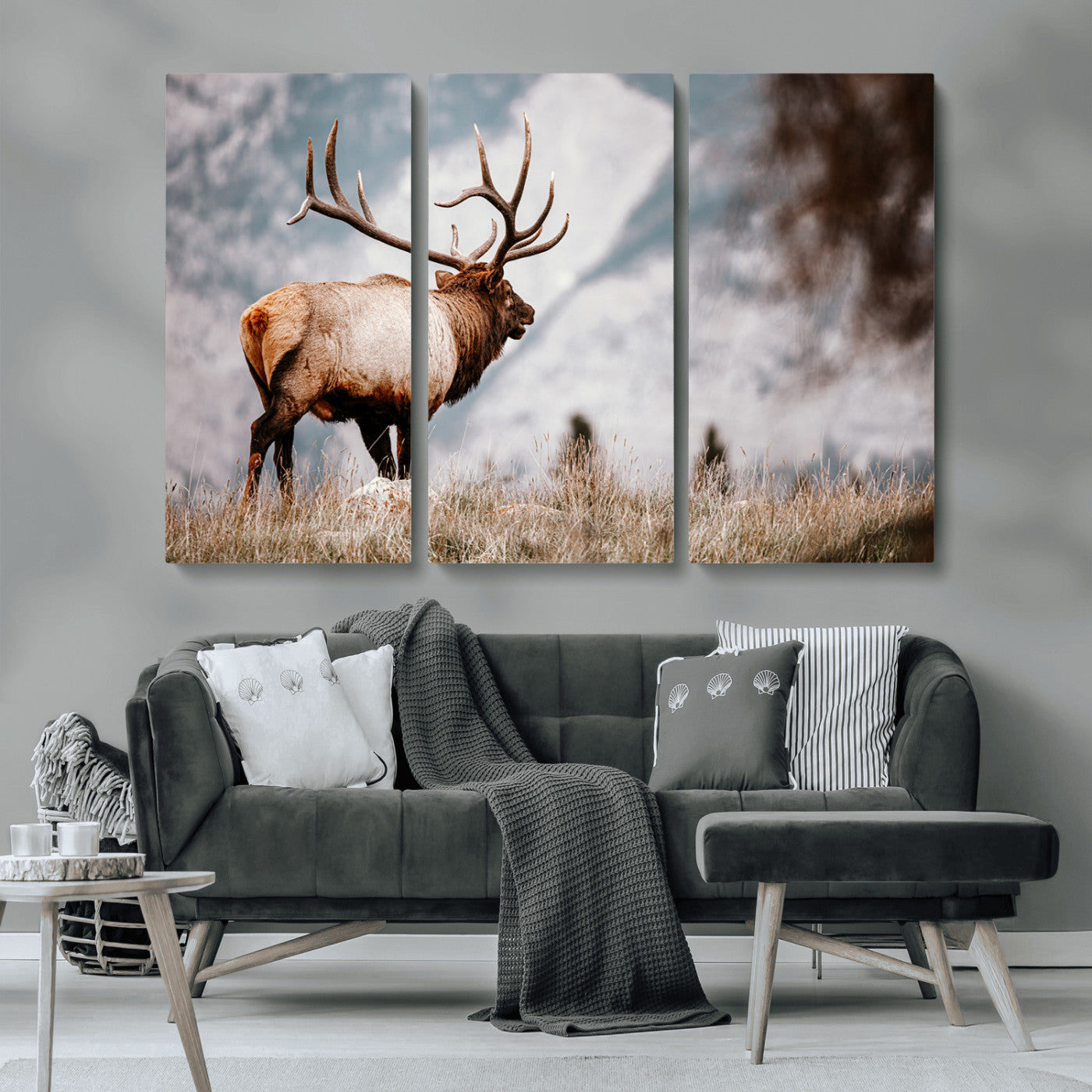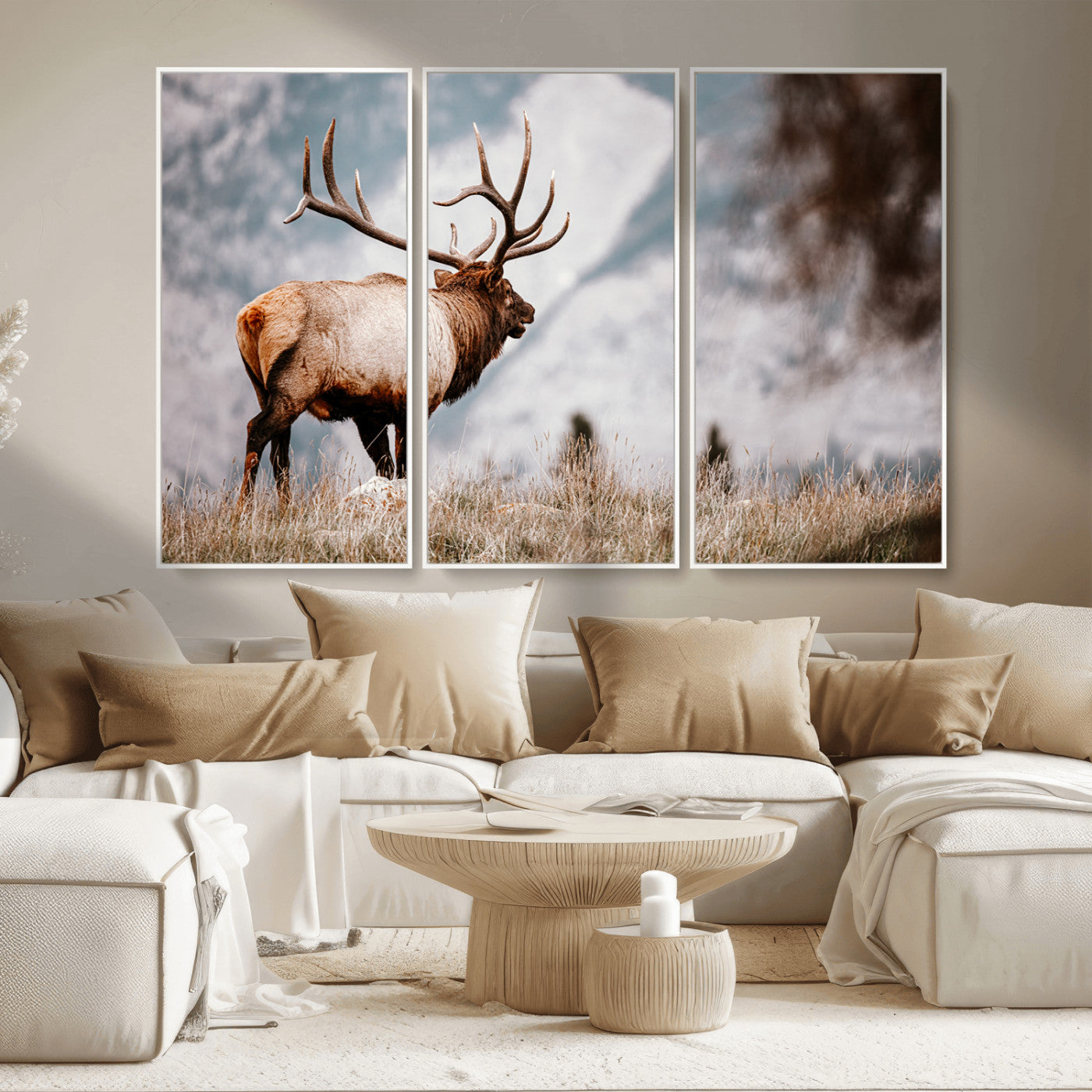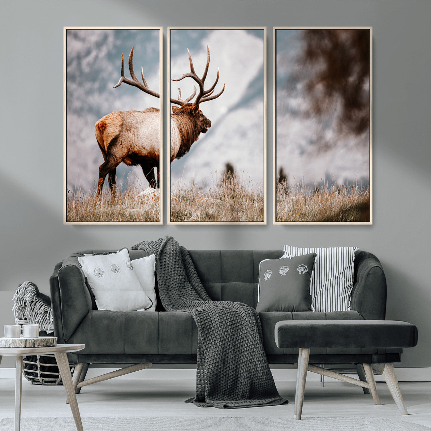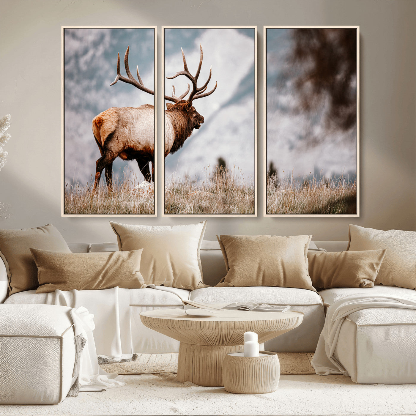 Elk Photography Wall Art Canvas Print, Framed Mountain Wildlife Art Picture Print, Rustic Nature Decor Perfect Rustic Lodge Decor