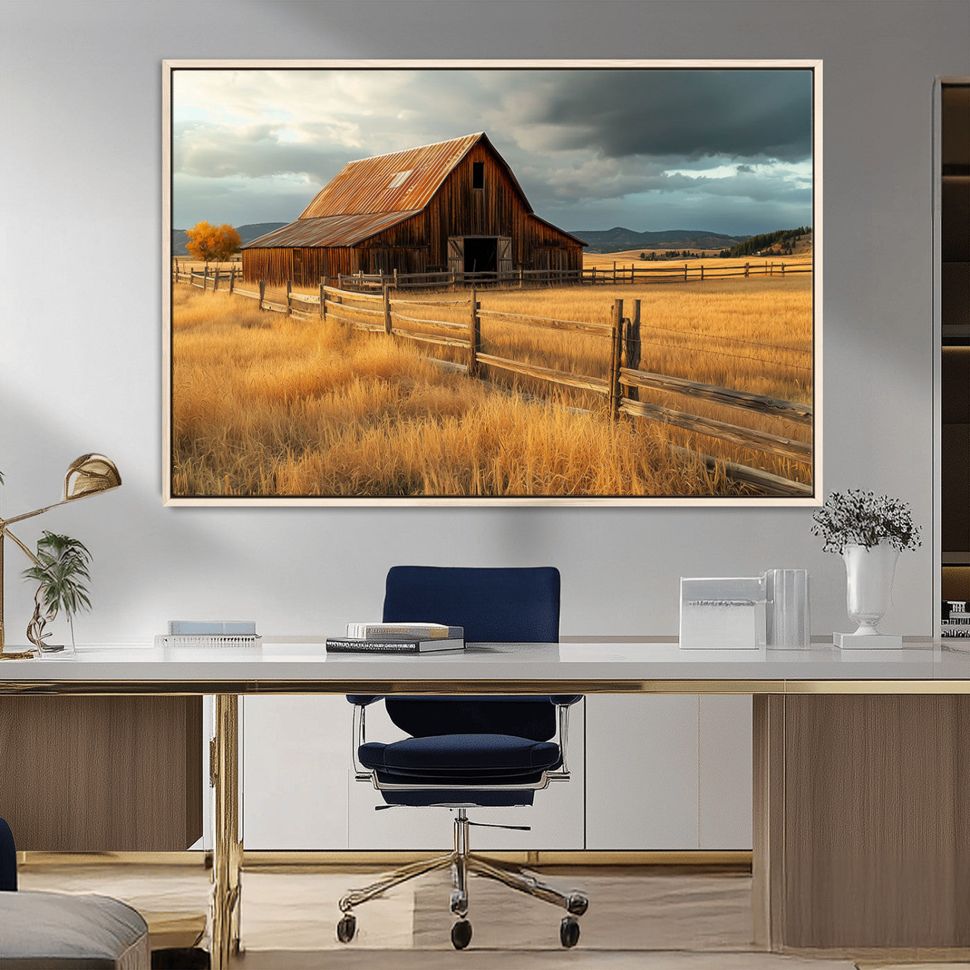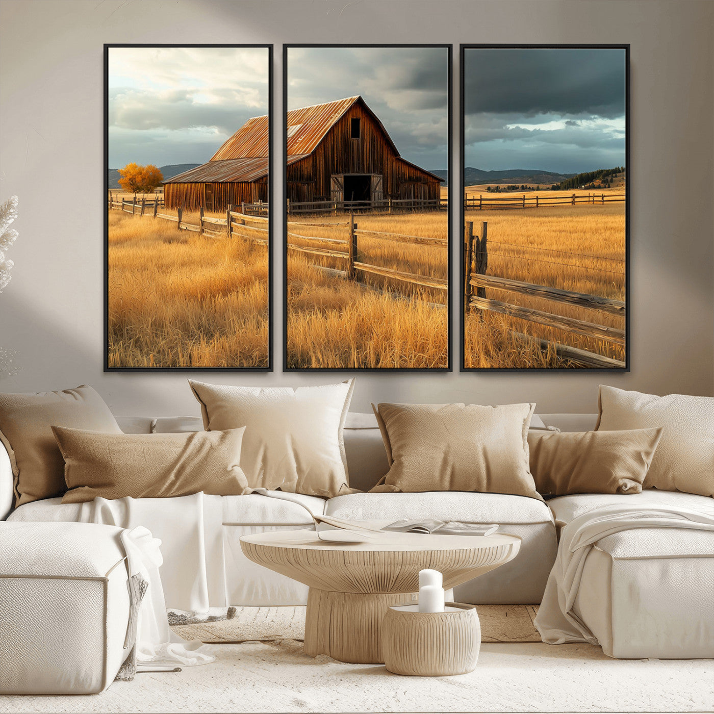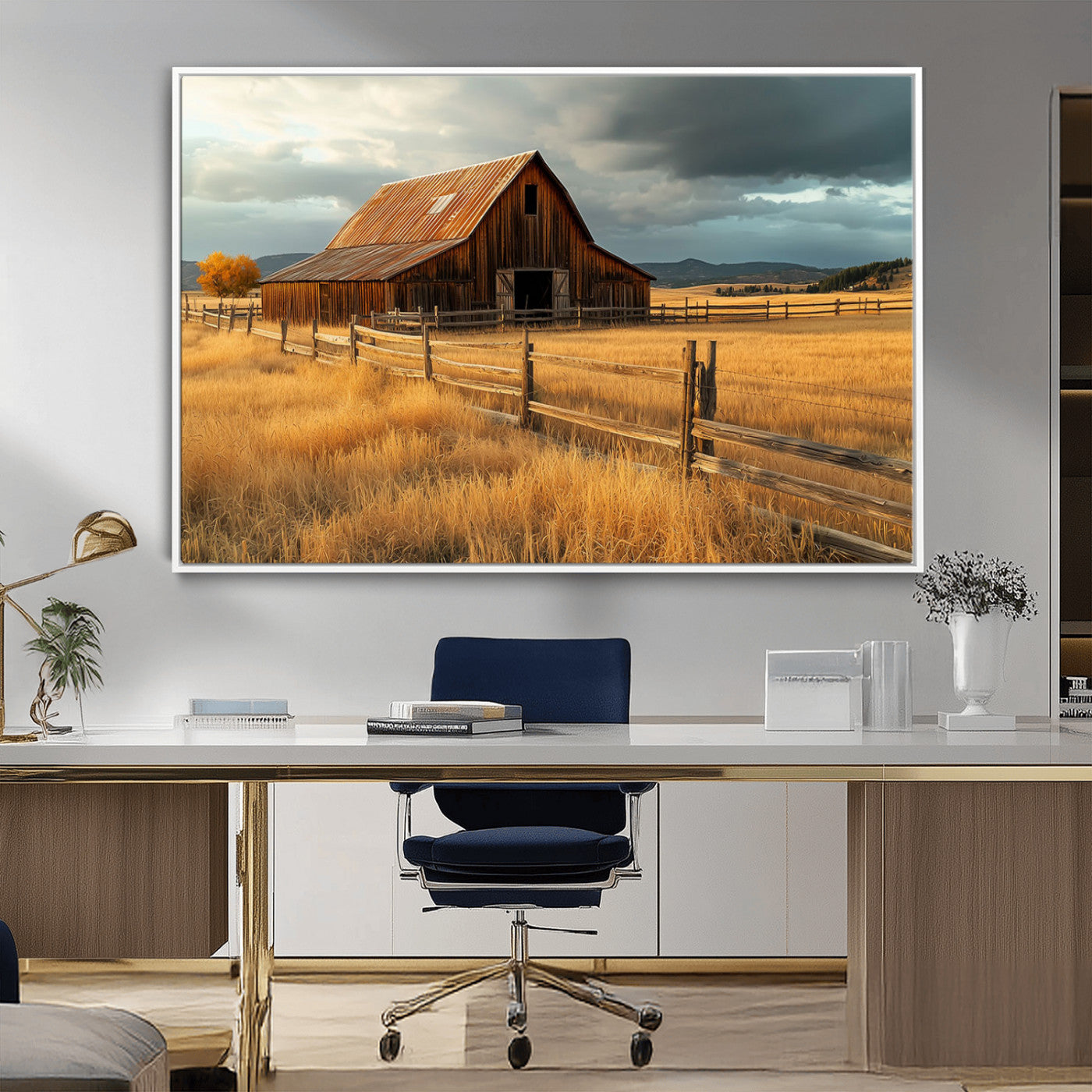 Farmhouse Wall Art – Rustic Barn and Golden Field Canvas Print, Country Landscape Photography Decor for Bedroom, Living Room, Office, Ranch or Cabin Gift is a high-quality decorative print that enhances any space. Printed with eco-friendly inks, ensuring vibrant and fade-resistant colors. The detailed artwork adds a sophisticated touch to interiors, making it perfect for various decor styles. Available in multiple sizes to fit different room settings.